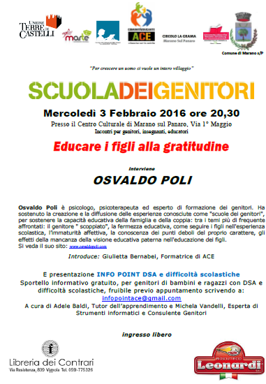 MERCOLEDI’ 3 FEBBRAIO 2016 – “EDUCARE I FIGLI ALLA GRATITUDINE”