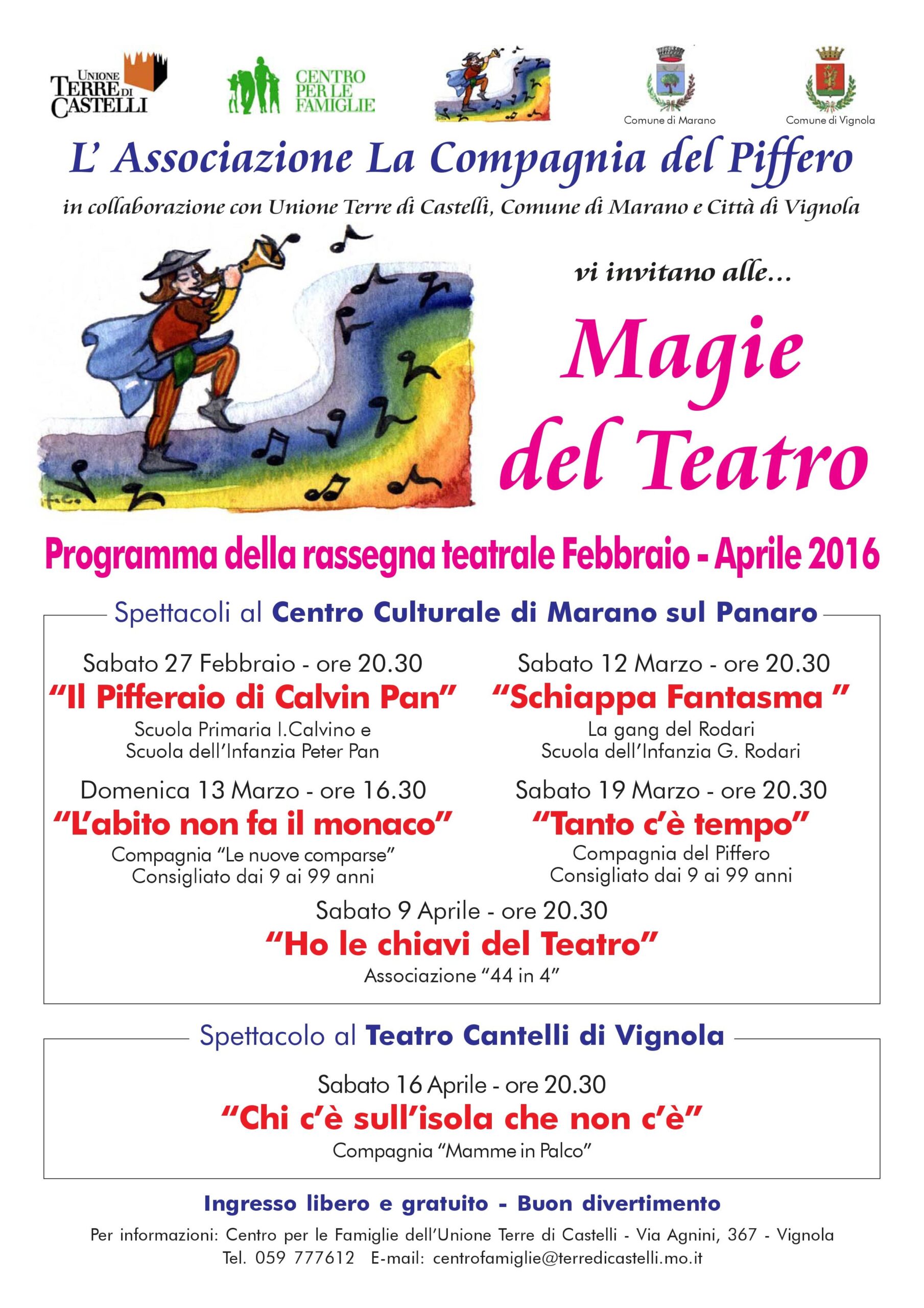PROGRAMMA DELLA RASSEGNA TEATRALE FEBBRAIO – APRILE 2016 – MAGIE DEL TEATRO