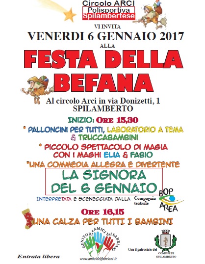 VI ASPETTIAMO TUTTI VENERDI’ 6 GENNAIO 2017 ALLA FESTA DELLA BEFANA