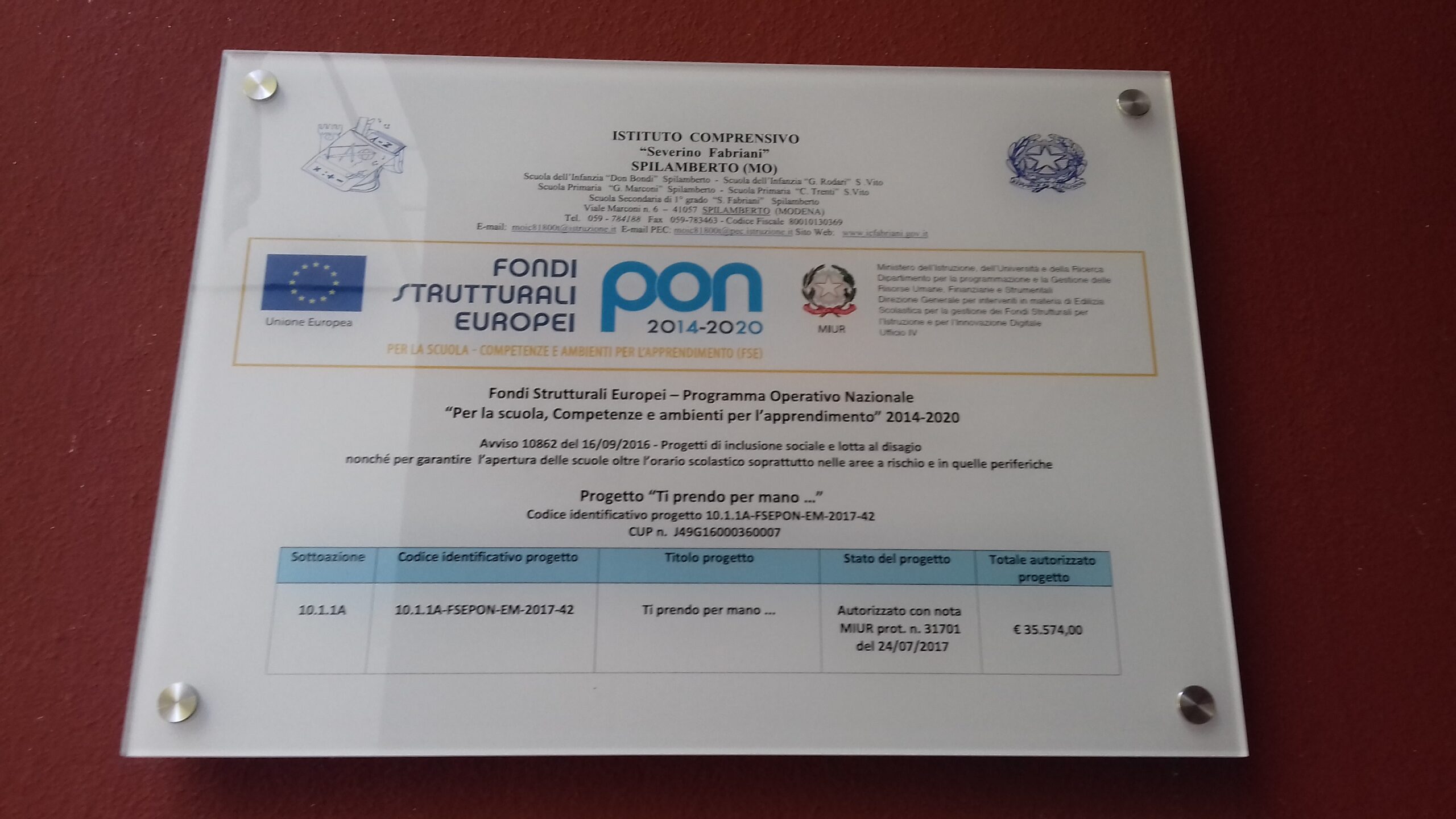LIstituto Comprensivo “S. Fabriani” nellanno 2017 è destinatario di finanziamento Fondo Sociale Europeo (FSE) per la realizzazione di “Progetti di inclusione sociale e lotta al disagio nonchè per garantire l’apertura della scuola oltre l’orario scolastico soprattutto nelle aree a rischio e in quelle periferiche”.