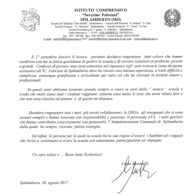 SALUTO DEL DIRIGENTE SCOLASTICO CARLA MARTINELLI