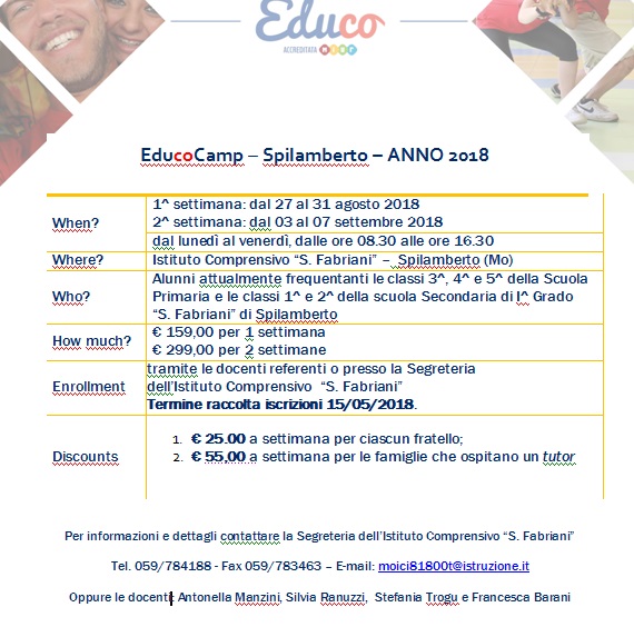 ENGLISH CAMP A.S. 2017/2018 – MODALITA’ DI ADESIONE AL PROGETTO ANNO 2018