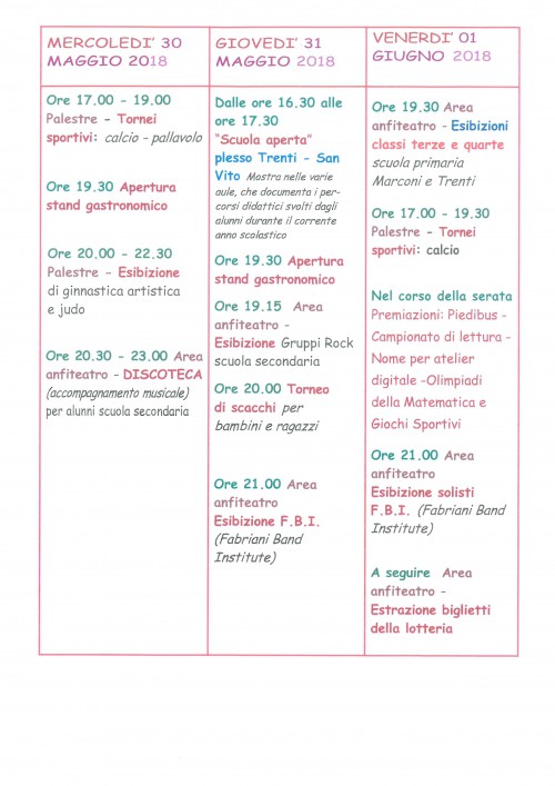 FESTA DELLA SCUOLA DI FINE ANNO SCOLASTICO 2017/2018