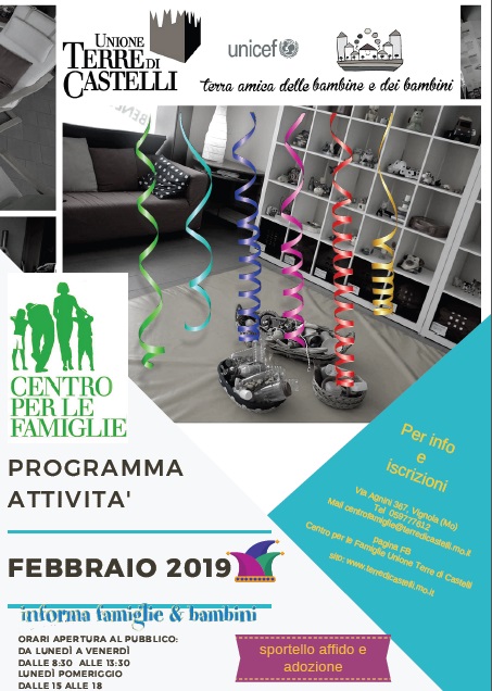 CENTRO PER LE FAMIGLIE PROGRAMMA ATTIVITA’ MESE DI FEBBRAIO 2019