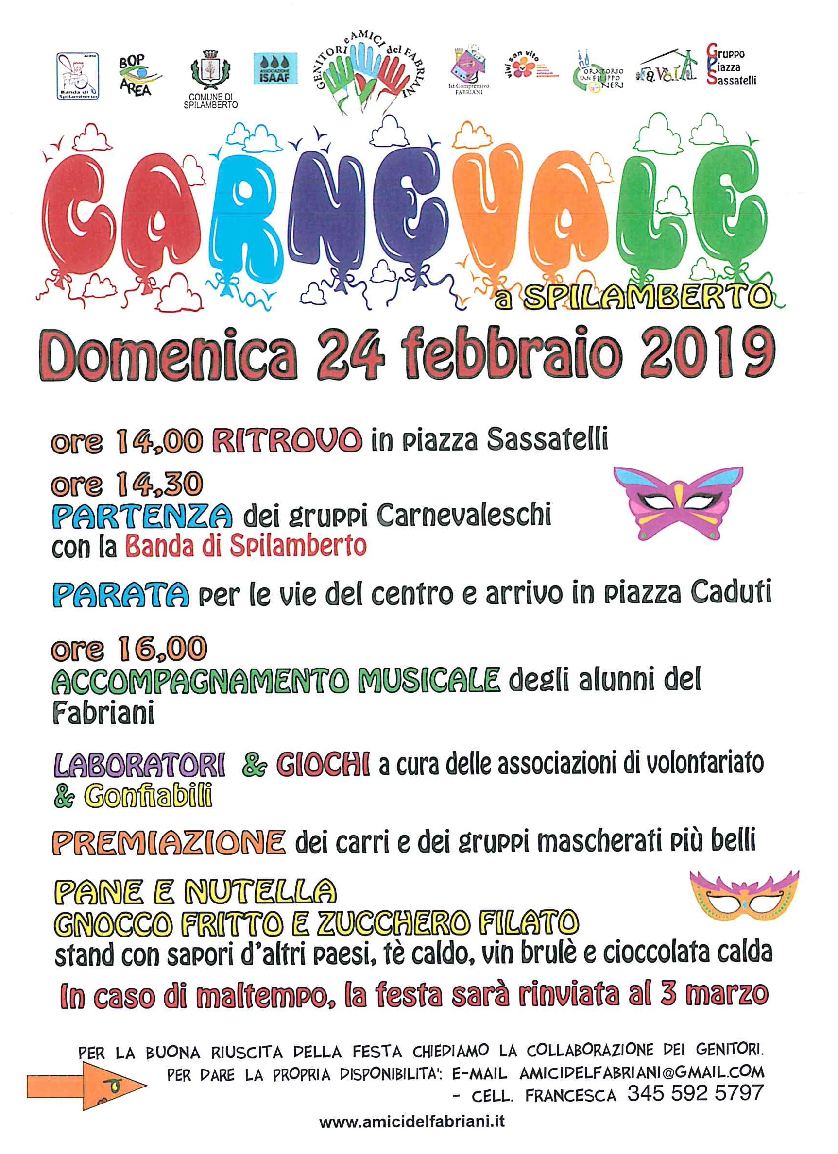DOMENICA 24 FEBBRAIO 2019 FESTA DI CARNEVALE A SPILAMBERTO