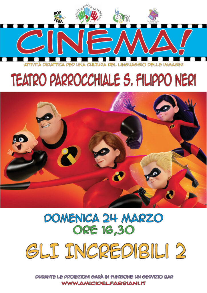 DOMENICA 24 MARZO 2019 AL CINEMA CON IL FILM: GLI INCREDIBILI 2