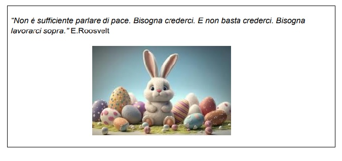 Colgo l’occasione per porgere agli alunni, ai genitori, ai docenti, al personale ATA e PEA i migliori auguri di Buona Pasqua.