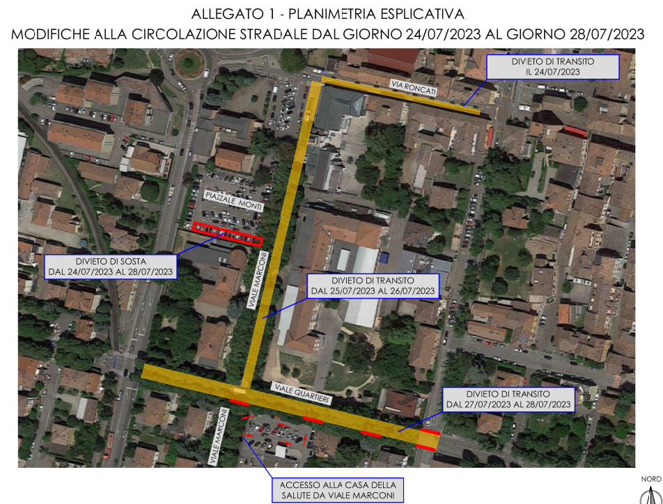 MODIFICHE ALLA VIABILITA’ PER LAVORI DI RIPRISTINO PAVIMENTAZIONE STRADALE IN VIA RONCATI, VIALE MARCONI E VIALE QUARTIERI DAL 24/07/2023 AL 28/07/2023