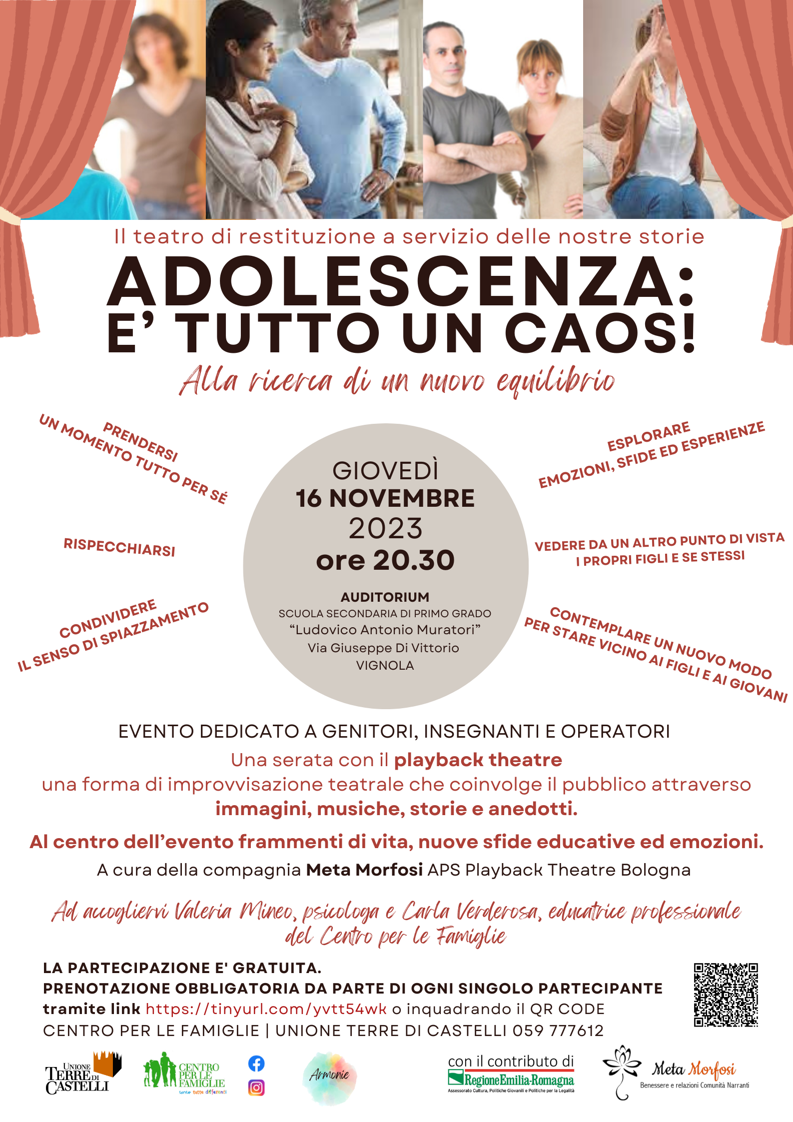 il 16 Nov 2023 ADOLESCENZA: E’ TUTTO UN CAOS! Alla ricerca di un nuovo equilibrio GIOVEDI’ 16 NOVEMBRE ore 2023