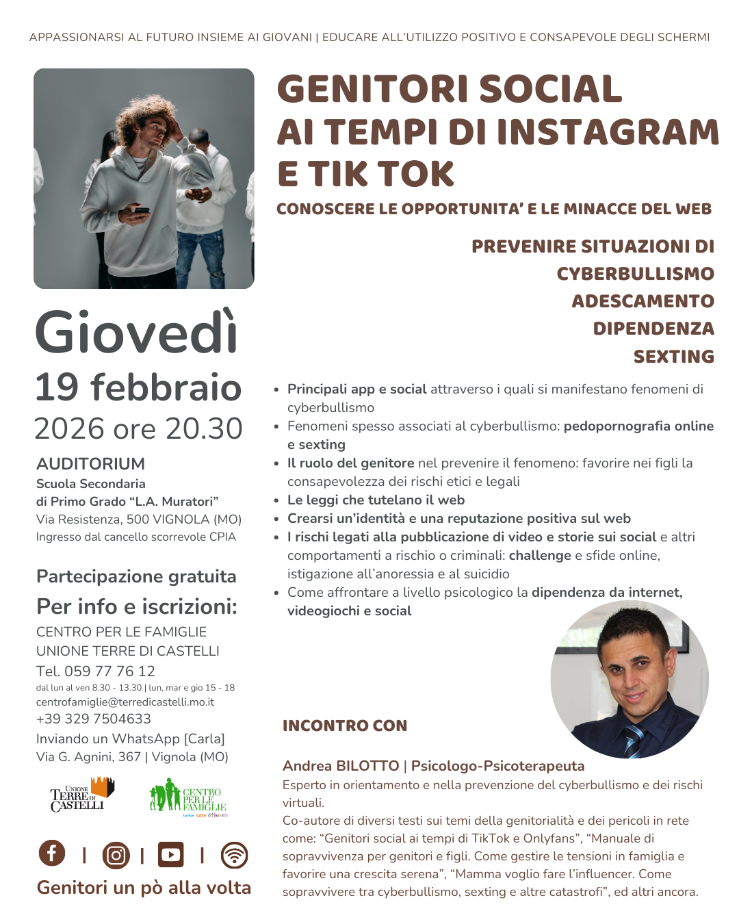 IL CENTRO PER LE FAMIGLIE DELL’UNIONE TERRE DI CASTELLI ORGANIZZA UN INCONTRO DAL TEMA “GENITORI SOCIAL AI TEMPI DI ISTAGRAM E TIK TOK”