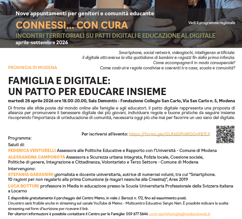 INIZIATIVA “CONNESSI .. CON CURA” – INCONTRI TERRITORIALI SUI PATTI DIGITALI E EDUCAZIONE AL DIGITALE
