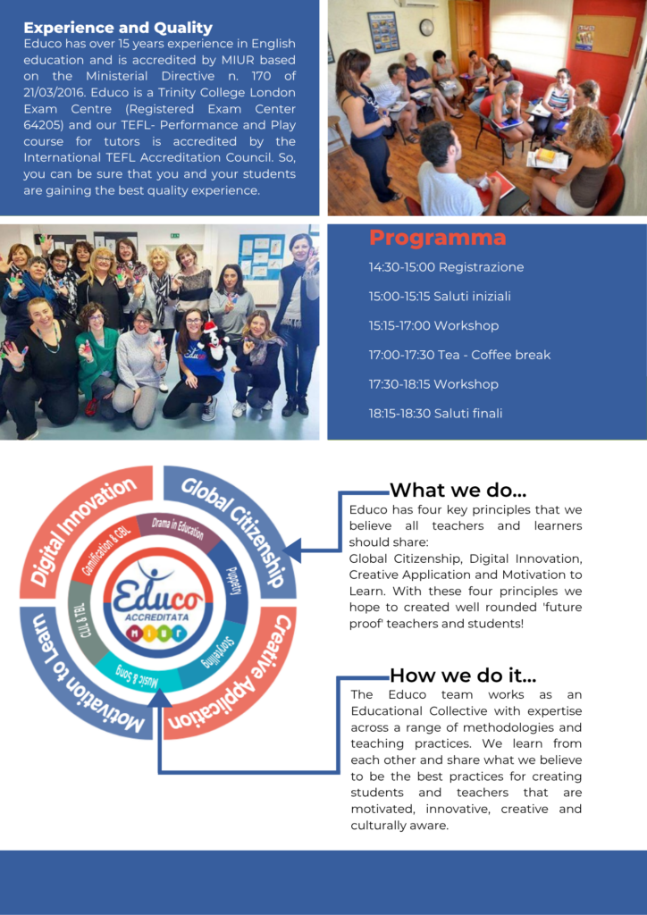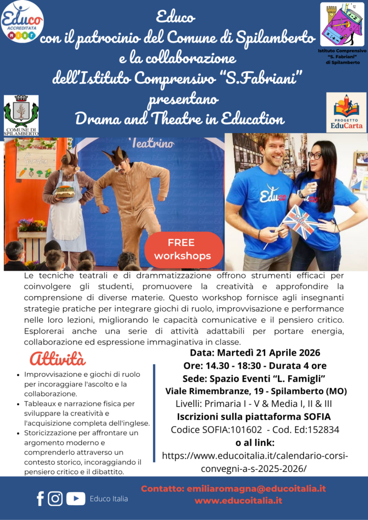 WORKSHOP DEL 21 APRILE 2026 PER GLI INSEGNANTI “DRAMA AND THEATRE IN EDUCATION”