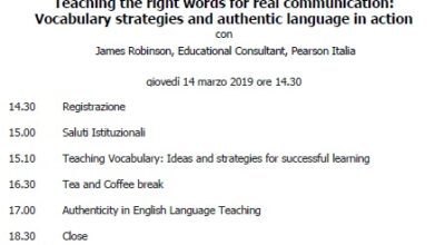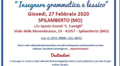 31 Gennaio 2020 GIOVEDI’ 27 FEBBRAIO 2020 INIZIATIVA FORMATIVA “INSEGNARE GRAMMATICA E LESSICO” CON IL PROF. PAOLO BALBONI RIVOLTA AI DOCENTI DI AREA LINGUISTICA Categorie Formazione e aggiornamentoFormazione e aggiornamento personale docente ed ata