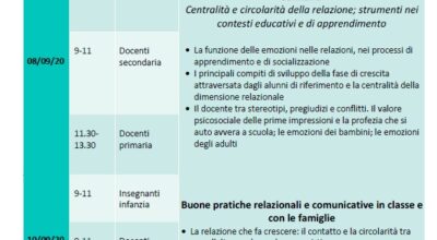 28 Agosto 2020 CORSO DI FORMAZIONE PER IL PERSONALE DOCENTE “LA CURA DELLE RELAZIONI E DELLE EMOZIONI AI TEMPI DEL COVID” Categorie Formazione e aggiornamento personale docente ed ata